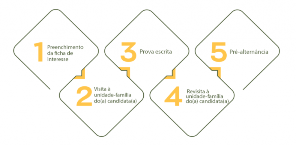 Além disso, o(a) interessado(a) participa de um processo seletivo composto por cinco etapas: